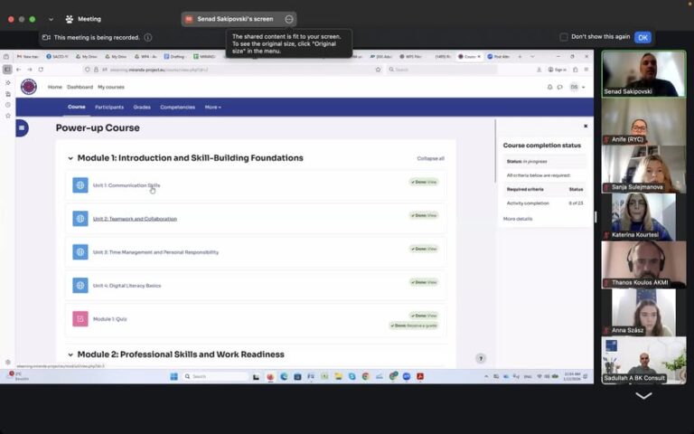 @miranda.eu.project is progressing.The consorcium met and discussed the ongoing and upcoming tasks. An online platform for the Power up coerces for Roma employability and inclusion into VET education is being finalizing.
