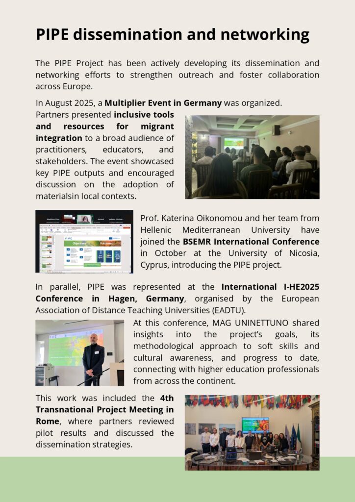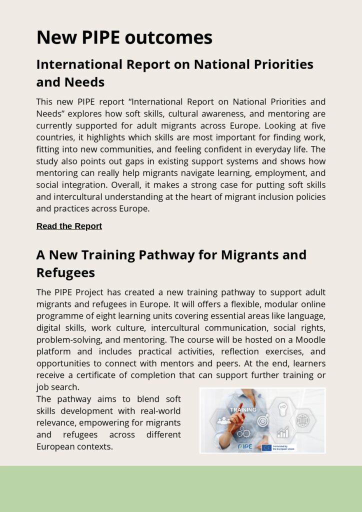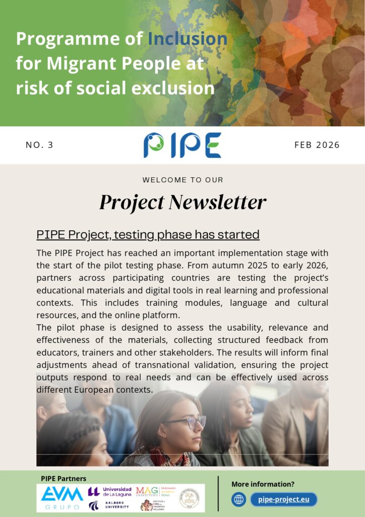 We’re excited to share the latest updates from the PIPE Project – Programme of Inclusion for Migrant People at Risk of Social Exclusion.